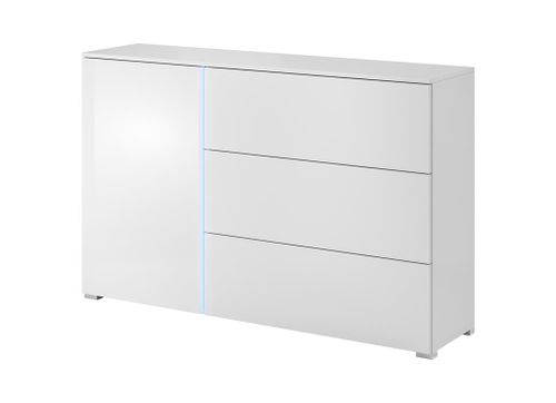 SIMPLE -Komoda SK 151 KOLORYSTYKA: Korpus: BIAŁY Front: BIAŁY POŁYSK WYMIARY: Szerokość: 151 cm Wysokość: 94 cm Głębokość: 39 cm Oświetlenie LED +(48 zł ) PRZEWIDYWANY CZAS REALIZACJI: 7 – 21 DNI Meble w paczkach do samodzielnego montażu wraz z instrukcją i akcesoriami.