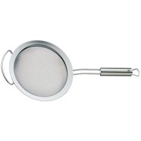 Praktyczne sitko do przesiewania i przecedzania. Posiada cienką i wytrzymałą siatkę drucianą, zaś szeroka krawędź i stabilna rączka zapewniają stabilne oparcie na krawędzi naczynia. Wyposażone w uchwyt umożliwiający zawieszenie na haczyku.