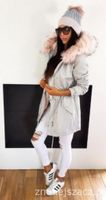 Przedmiotem aukcji jest zimowa parka z kożuszkiem - siwa z różowym kożuszkiem