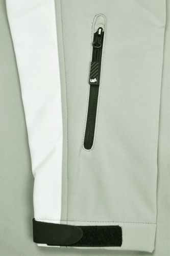 Nowa kurtka marki Urban Beach. Kurtka siwo biała. Z zewnętrzną powłoką typu Softshell, zapewniająca odporność na poziomie 10 000mm i oddychalność 1000mm. Komfort zapewniają regulowane zamki, mankiety, dodatkowo otwierane elementy wentylacyjne pozwalające zrzucić nadmiar ciepła. Wnętrze pokryte polarową wyściółką 140 gsm w kolorze białym. Kieszenie zapinane na czarny zamek.