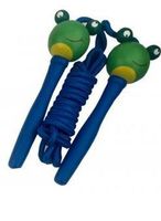 Rękojeść skakanki zrobiona jest z lakierowanego drewna, a na jej końcu znajduje się głowa żabki. Sznurek pasuje kolorem do rękojeści, co dodaje całej skakance uroku.