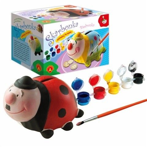 Ceramiczna skarbonka to dobry początek do nauki oszczędzania. Ta skarbonka jest też doskonałą okazją do kreatywnej zabawy w stworzenie własnego, indywidualnego wzoru. Zestaw zawiera 6 kolorów niezmywalnych farbek i pędzelek. Dzięki temu każdy może pomalować swoją skarbonkę według własnej wizji i fantazji. W opakowaniu znajduje się również instrukcja, która zawiera kilkanaście przykładów na pomalowanie - co może być dobrą inspiracją dla każdego twórcy.