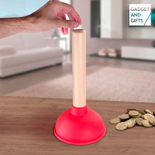 Jeżeli jesteś odważny i oryginalny, o nie chowaj swoich oszczędności w konwencjonalnej skarbonce! Przedstawiamy Ci zaskakującą skarbonkę Przepychacz. Oryginalna plastikowa skarbonka, w kształcie przepychacza do WC. Wyposażona jest w otwór do wrzucania monet i zatykana jest na korek, umieszczony na dole. Przybliżone wymiary (średnica x wysokość): 15 x 31 cm.