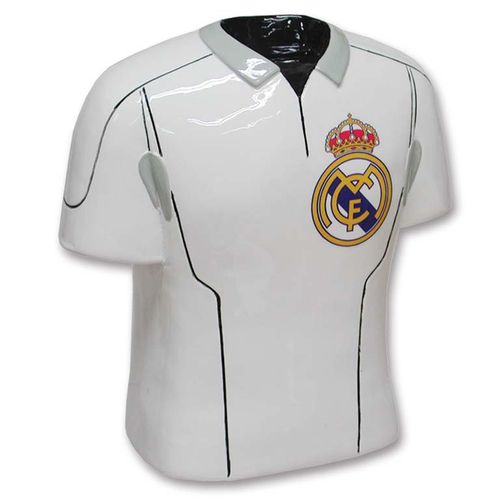 Zaprojektowana w bardzo pomysłowy sposób skarbonka Real Madryt. Wykonana w formie 3D w kształcie piłkarskiej koszulki z otworem na pieniądze i możliwością otwarcia od spodu. Prezentuje się bardzo oryginalnie, będzie doskonałą ozdobą i idealnym kolekcjonerskim gadżetem.