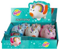 Kolorowa, ceramiczna skarbonka w kształcie świnkorożca.