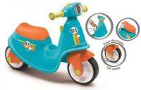 Uroczy retro skuter na trzech miękkich kółkach, z wygodnym siedziskiem, schowkiem na drobiazgi, stacyjką z kluczykiem. Wytrzymała konstrukcja i niepowtarzalne wzornictwo.