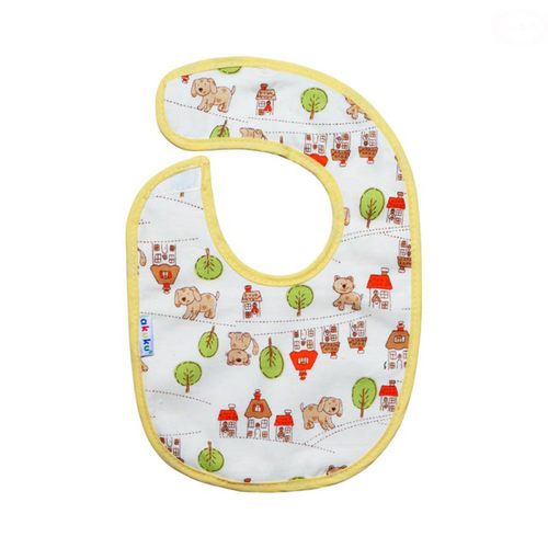 Wewnętrzna część została podszyta wodoodporną warstwą z miękkiej ceratki, która dodatkowo zabezpiecza ubranie przed zabrudzeniem i czyni śliniak nieprzemakalnym