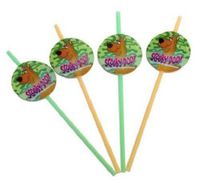 Opakowanie zawiera 10 sztuk plastikowych, łamanych słomek w dwóch kolorach zielonym i żółtym z papierowym medalionem z nadrukiem z bajki Scooby Doo i Tajemnicza Spółka. Produkt licencjonowany. Przeznaczony do kontaktu z żywnością i napojami.