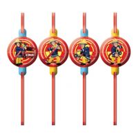 Opakowanie zawiera 8 sztuk plastikowych, łamanych słomek w kolorze czerwonym z papierowym medalionem z nadrukiem z bajki Strażak Sam. Produkt licencjonowany renomowanej firmy Amscan. Przeznaczony do kontaktu z żywnością i napojami. Długość słomki - 24 cm, średnica ok. 4 mm