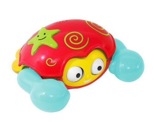 Biegający Krab Uciekający krab, który rusza oczami.Po naciśnięciu pancerza krab zaczyna poruszać śmiesznie odnóżami i oczami. Gra też wesołe melodyjkiW którą stronę chodzi krab?Dzięki tej zabawce dziecko odkryje, że poruszać się można nie tylko do przodu i do tyłu. Nasz krab porusza się na boki.Złap krabaPodążanie za krabem to świetna okazja do rozwoju dużej motoryki. Zabawka zachęca do pełzania i raczkowania.Wymaga 2 baterii typu AA 1,5V. Dołączono do zestawu.Wiekod 6 miesięcyWymiaryp20 x 10 x 15 cm/p