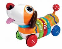 Kolorowy Burek Hau Hau to wesoły piesek gotowy na długie zabawy z Twoim dzieckiem. Jest sterowany pilotem, dzięki czemu zachęci dziecko do aktywności i samodzielnego odkrywania świata. Muzyczne niespodzianki i ruchome elementy angażują wyobraźnię na długi czas. Burek mówi po polsku wesołe teksty, recytuje krótkie wierszyki.Dlaczego Burek:- Wspomaga sprawność manualną dziecka.- Rozwija jego zdolności poznawcze, oraz stymuluje i wspomaga rozwój zmysłów.- Aktywizuje zmysł dotyku: korpus pieska, jego ogonek, przyciski mają różne faktury.- Dba o rozwój wzroku: żywe, kontrastujące kolory, światełka, ruszające się elementy.- Nie zapomina o słuchu: szczekanie, przyjemne, relaksujące melodie, rozbrzmiewające po naciśnięciu odpowiednich przycisków, zabawne wierszyki.Burek to piesek sterowany pilotem. Pilot w kształcie kości ma 2 przyciski: jazda do przodu i jazda do tyłu ze skrętem. Sterowanie nim jest więc łatwe nawet dla małego dziecka.Co potrafi piesek:- Macha ogonkiem- Rusza uszami- Szczeka- Świeci- Mówi po polsku- Porusza się do tyłu i do przodu- Gra wesołe melodyjki- Jest zdalnie sterowany, pilot w kształcie kości (jeździ do przodu i do tyłu). Piesek Burek Hau Hau w całości wykonany jest z bezpiecznego plastiku, łatwego do utrzymania w czystości..Zabawka wymaga baterii: 2 x baterie AA 1,5 V - załączone baterie testowe 3 x baterie AA 1,5 V - załączone baterie testoweWiekod 1 rokuWymiaryop. 26,5x18x10 cm