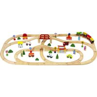 Drewniana kolejka, 80 elementówDrewniane zabawki od pokoleń uczą i bawią dzieci. Są trwałe, ekologiczne i bezpieczne.Są przyjemne w dotyku, pobudzają wyobraźnię, uczą kreatywności, logiki, rozwijają osobowość.Drewniana kolejka, to zestaw składający się z 80 elementów: stacji kolejowej, lokomotywy i trzech wagonów, które można doczepiać w dowolnej kolejności. Z elementów można zbudować długi tor dla kolejki. Pozostałe elementy stworzą piękny krajobraz wokół torów. Zabawka pomaga w rozwoju kreatywności i zdolności postrzegania przestrzennego oraz rozwija zdolności logicznego myślenia.Zestaw zawiera 80 elementów o różnych kolorach i kształtach.Klocki swoim kształtem idealnie dopasowują się do małej rączki dziecka.W zestawie znajdują się pojazdy, figurki, budynki, mosty i przejazdy oraz znaki drogowe.Zabawka jest trwała, ekologiczna i bezpieczna.Układanie torów kolejki rozwija zdolności logicznego myślenia, a ustawienie pozostałych klocków pomaga w rozwijaniu kreatywności i zdolności postrzegania przestrzennego.Co zyskuje twoje dziecko:- Rozwój sprawności manualnej.- Rozwój koordynacji wzrokowo-ruchowej.- Nauka kształtów i kolorów.Wiekod 3 latWymiarypPo rozłożeniu: 120 x 60 x 40 cm/p