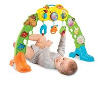 3 zabawki w 11. mini siłownia do wzmacniania mięśni dziecka2. interaktywny, odczepiany panel z wiszącymi zabawkami do łóżeczka3. łatwo odczepiane grzechotkiPo rozłożeniu zabawki leżące dziecko może bawić się Mini-Siłownią. Panel z melodyjkami można zamocować do łóżeczka. Grzechotki ze zwierzątkami łatwo odłączyć od zabawki i wziąć ze sobą na spacer.Zwierzęta z wiejskiego podwórka.Zabawka zapozna dziecko ze zwierzątkami, które można spotkać na wsi. Już najmłodszego malucha warto uczyć powtarzania wyrazów dźwiękonaśladowczych i nazw zwierząt. To bardzo dobre ćwiczenie logopedyczne.Sprawne ciało.Sięgając do grzechotek i przycisków, dziecko jak w prawdziwej siłowni ćwiczy sprawność ciała.Dźwięki i światełka rozwijają zmysły malucha.Grzechotki i panel z melodyjkami są okazją do różnorodnych ruchów dłoni (przesuwania, przekręcania, obracanie....) i rozwijają ich sprawność.Wymaga baterii 2xAA 1,5V - dołączoneWiekod 0 miesięcy