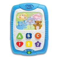 Zabawka - tablet gra są wesołe melodie, wydaje śmieszne dźwięki, a towarzyszą im efekty świetlne. Tablet mówi po polsku.Co zyskuje Twoje dziecko: Słuchając wesołych melodyjek rozwinie zmysł słuchu Rozwinie zmysł dotyku Nauczy się pierwszych cyfr, liter, kształtów Będzie się znakomicie bawiło Tablet Smyka to zabawka interaktywna. Każde przyciśnięcie guzika sprawi, że tablet wyda dźwięki. Zabawka w trybie muzycznym gra wesołe melodie i migocze światełkami na ekranie. W trybie edukacyjnym zabawa z tabletem uczy dzieci nowych słów. Wciśnij którykolwiek z 6 przycisków funkcyjnych, aby poznać pierwsze kształty, kolory i litery. Zabawka w pełni wykonana jest z bezpiecznych materiałów.Wymaga baterii: 2 x AAA (dołączona do zestawu).Wiekod 6 lat