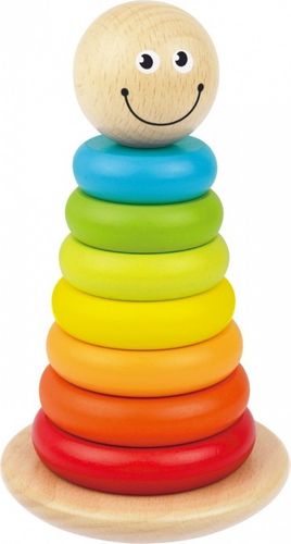 Drewniana piramidka składająca się z 7 kolorowych krążków.Ma chwiejącą się przy poruszaniu podstawę typu wańka - wstańka, oraz śmiejącą się główkę. Zabawa z piramidką rozwija:- umiejętności logicznego myślenia,- koordynację ręka – oko,- uczy rozpoznawania kolorów- pojęcia większy – mniejszy.Wykonana jest z wysokiej jakości drewna. Nie ma ostrych kształtów. Do produkcji zabawki użyto nietoksycznych farb.Wiekod 18 miesięcy
