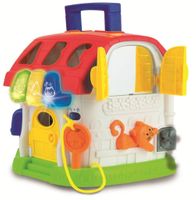 Poznawanie kształtów i literek, nauka wierszyków i piosenki. Chatka jest sorterem z 6 klockami. Dzięki nim dziecko pozna 3 podstawowe figury geometryczne oraz 3 literki. Poza tym razem z chatką dziecko może recytować wierszyk lub śpiewać 2 piosenki.