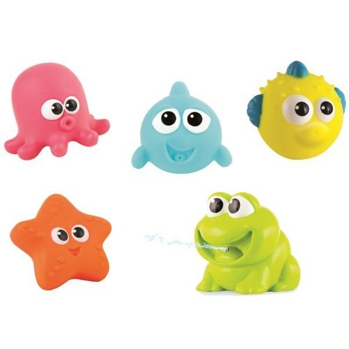 5 pyzatych zwierzątek umilają każdą kąpiel. Po ściśnięciu zabawnie tryskają wodą. Są idealnie dopasowane do małej rączki.