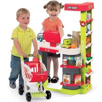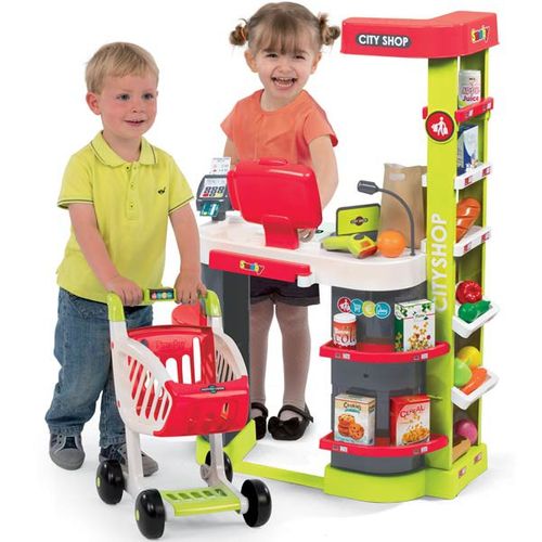 W zestawie elektroniczna kasa, zintegrowany kalkulator z ekranem LCD, skaner z dźwiękiem i światlem, waga mechaniczna, czytnik kart kredytowych, drukarka do paragonów, wózek na zakupy. Baterie 2x AAA brak w zestawie.