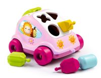 Samochód z klockami to doskonała propozycja zabawy w sortowanie. Wesołe, barwne auto