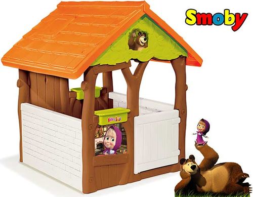 Leśny Domek SMOBY to najwyższej jakości oryginalny, francuski produkt, który posłuży Twoim dzieciom przez wiele lat. Do niezwykłego domku Mashy, zaprasza nas mała bohaterka, ulubionej przez dzieci bajki. Domek wygląda jak prawdziwa leśna chatka: zielony daszek, ściany stylizowane na elementy drzew dają wrażenie, jakbyśmy znaleźli się w magicznym świecie Mashy.Domek wyposażono w dwie doniczki, dzięki czemu nasz maluch będzie miał możliwość zasadzenia i pielęgnowania własnych roślin. Ozdobiony jest wizerunkami rezolutnej Mashy i jej przyjaciela niedźwiedzia.Ten leśny domek powstał z trwałego tworzywa odpornego na warunki atmosferyczne i promienie UV