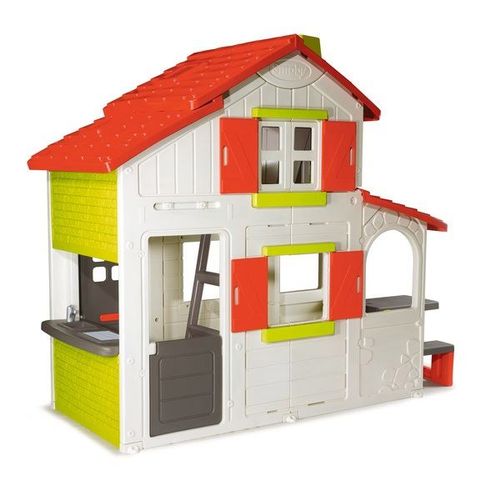 Duplex to fantastyczny dwupoziomowy domek z pięterkiem na poddaszu. Dzieci czeka tu naprawdę pyszna zabawa!Na parterze znajdują się dwa wejścia do domku, okna z otwieranymi okiennicami, stolik z ławeczkami oraz płotek. Ponadto w domku znajduje się grill, umywalka. Na piętrze okna zabezpieczono tzw. szprosami czyli powierzchnia okna została podzielona w celach dekoracyjnych na kilka części, co gwarantuje bezpieczną zabawę. Na poddasze dzieci mogą dostać się po drabince, która znajduje sie w domku. Dodatkową atrakcją jest dzwonek wydający dźwięki. Domek Duplex charakteryzuje wysoka jakość, realistyczna, ładna kolorystyka,chroniona powłoką anty-UV.