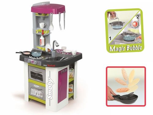 Kuchnia to magiczne miejsce, w którym można wyczarować fantastyczne potrawy. Wystarczy odrobina wyobraźni i zabawa zaczyna się na całego! Duża kuchnia z piekarnikiem i lodówką, ekspresem, gotującą się wodą" i 26 elementami do zabawy.