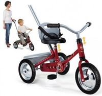 Rowerek trzykołowy z zabudowaną przekładnią łańcuchową.Solidna, metalowa rama.Regulowana, wygodna rączka do prowadzenia, którą można zdemontować.Ciche koła.Mechanizm tzw. wolnego koła, tzn. kółko obraca się a pedały stoją w miejscu (idealne rozwiązanie podczas prowadzenia rowerka, dziecko swobodnie trzyma nóżki na pedałach).To wszystko znajdziemy w tym solidnym wykonanym z dbałością o szczegóły rowerku.