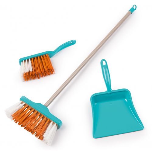 W zestawie znajdziemy 3 akcesoria takie jak szufelka, zmiotka oraz szczotka.