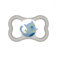 Jego budowa zapobiega przesuwaniu, dzieki czemu smoczek pozostaje tam, gdzie jego miejsce - w buzi dziecka