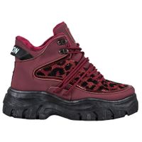 Sneakersy na masywnej podeszwie z platformą to wygodne obuwie damskie w sportowym stylu. Cholewki w modnym czerwonym kolorze sprawiają, że buty te będą świetnym uzupełnieniem wielu różnych stylizacji na co dzień. Ozdobą tego modelu są wstawki z motywem zwierzęcej skóry oraz ciekawy sposób sznurowania.