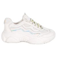 Damskie sneakersy na platformie od producenta obuwia SHELOVET powstały z wysokiej jakości materiału syntetycznego. Buty są niezwykle wygodne i idealnie sprawdzą się w połączeniu ze sportowymi i casualowymi stylizacjami. Kolorowe elementy w połączeniu z białą cholewką, prezentują się niezwykle okazale.