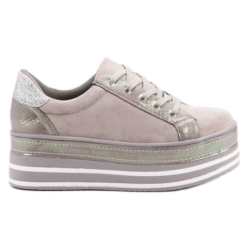 Nieprzeciętne sneakersy na platformie w kolorze szarym z pewnością przypadną do gustu kobietom, ceniącym sobie grungowe wzornictwo. Jest to model dość wysoki, jednak stabilny i bezpieczny podczas chodzenia. Solidna konstrukcja przekłada się na komfort użytkowania.