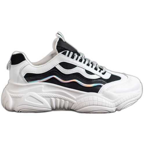 Biało-czarne sznurowane sneakersy o bardzo modnym wyglądzie. Świetny fason i modny sznyt sprawiają, iż każda kobieta z przyjemnością nosi je do codziennych stylizacji. Wygodne, przystępne na każdą kieszeń, staną się ulubioną parą sneakersów każdej nastolatki. Modny i ponadczasowy styl sprawiają, iż buty te nie wyjdą z mody przez kilka sezonów.