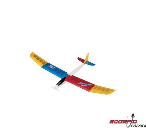 Całobalsowy konstrukcyjny model szybowca z silnikiem i składanym śmigłem, oklejony przeźroczystą folią. Wymagany minimalny czas do dokończenia i przygotowania do lotu. Można latać na małej przestrzeni, model jest odpowiedni do nauki sterowania. Sterowanie wysokość, kierunek i silnik.