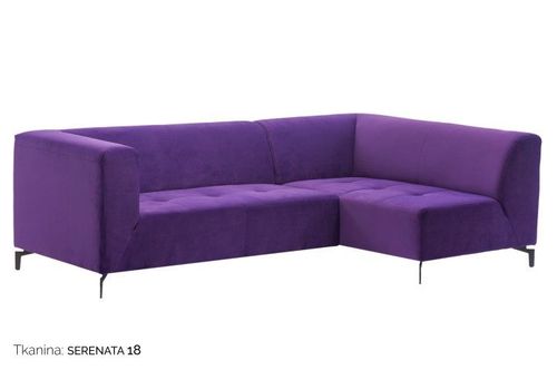 Narożna sofa Moderno w nowoczesnym stylu ma w sobie nieco charakteru pop artu, co sprawi, że będzie się wyróżniać w praktycznie każdym wnętrzu. Sofa ma niewysokie oparcie z łagodnie nachylonym tyłem, co daje natychmiastowe wrażenie wygody. Dłuższa część kanapy zakończona jest prostym podłokietnikiem tej samej wysokości co oparcie. Krótsza część jest otwarta, tworząc tym samym wygodny szezlong. Siedzisko jest pikowane w regularne kwadraty, co podkreśla nowoczesny charakter mebla. Podstawę sofy stanowią czarne, metalowe nóżki o oryginalnym kształcie, z prostym, cylindrycznym dołem i ostro wygiętą pod kątem górną częścią. Obicie sofy jest personalizowane*, sofa jest produktem na zamówienie. Kolor oraz fakturę tkaniny można wybrać spośród zaprezentowanych próbników. Prosimy o wpisanie wybranego koloru w polu UWAGI,*Produkt personalizowany nie podlega zwrotowi ani wymianie..Czas oczekiwania na produkt wynosi od 4-6 tygodni.