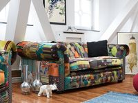 Szukasz klasycznej sofy o nietuzinkowym wyglądzie? Marzy Ci się mebel będący połączeniem angielskiej klasyki i nowoczesnego, przykuwającego wzrok wzoru? Jeśli odpowiedziałeś twierdząco na choćby jedno z powyższych pytań, ta patchworkowa sofa jest stworzona właśnie dla Ciebie! Ten ponadczasowy klasyk wśród mebli tapicerowanych, dzięki kolorowemu wzorowi typu patchwork wygląda nad wyraz nowocześnie. Obicie sofy zostało wykonane z wysokiej jakości poliestru. Niejedno spojrzenie przyciągną z pewnością ozdobne guziki, które znajdują się na zaokrąglonych oparciach. Sofa jest odpowiednio szeroka, głęboka i idealna dla trzech osób, które chciałyby zrelaksować się po pracy. Posiada ona następujące wymiary: 200x96x71cm, wysokość siedziska: 43 cm i powierzchnia siedziska: 56x141 cm. Klasyczny wygląd w połączeniu z wygodą – zasiądź wygodnie w tej sofie i ciesz się każdą chwilą relaksu!