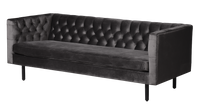 Szara sofa Vanity. Wykonana z weluru sofa w szarym odcieniu, ma bardzo oryginalny, choć prosty kształt. Sofa na czterech krótkich nóżkach, jest symbolem nienagannej finezji. Całe oparcie charakteryzuje gęste pikowanie, a uroku sofie dodają prostopadłe ramiona dostosowane do wysokości całego mebla. Sofa o wymiarach 201x88cm i całkowitej wysokości 76cm doskonale uzupełni każde wnętrze w nowoczesnym stylu.