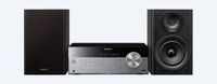 Sony CMT-SBT100B DABPrzesyłaj dźwiękDomowe zestawy muzyczne z bezprzewodową łącznością NFC Bluetooth®. Zapomnij o przewodach – korzystaj z funkcji strumieniowego przesyłania muzyki bezpośrednio ze smartfona do zestawu audio. Bezprzewodowa łączność NFC Bluetooth umożliwia odtwarzanie ulubionych utworów w wypełniającym pomieszczenie brzmieniu o mocy 50 W. Wbudowany odtwarzacz CD nie pozwoli zapomnieć Ci klasycznych kolekcji na płytach.Wystarcza jedno dotknięcieBez potrzeby parowania. Wystarczy zetknąć smartfon lub tablet z NFC z zestawem muzycznym, aby usłyszeć ulubione utwory wypełniające pokój bogatym brzmieniem.Maksymalizacja dźwiękuUsłysz wypełniający pomieszczenie dźwięk o mocy 50 W dzięki wbudowanym wzmacniaczom cyfrowym S-Master R generującym czyste brzmienie oraz dwudrożnym głośnikom Bass Reflex, gwarantującym mocny, pełny bas.EAN: 4905524926439Gwarancja: gwarancja zewnętrzna 24 miesiąceKod dostawcy: SONY CMT-SBT100B DABSystem: MikrowieżaLiczba kanałów audio: 2.0Moc głośników (sumaryczna): 50 WTuner FM: TakPasma: AMPamięć stacji: 20Odtwarzacz CD: TakOdczytywane formaty płyt CD: CD-RWOdczytywane formaty płyt DVD: BrakOdtwarzanie z USB: TakOdtwarzane formaty audio: MP3Stacja dokująca: NieFunkcje specjalne: Druga młodość płyt CD Wbudowany odtwarzacz CD współpracuje z nośnikami CD, CD-R i CD-RW i pozwala na użycie funkcji odtwarzania losowego/wielokrotnego oraz programowaniOdbiór radia DAB/DAB+ Cyfrowy radioodbiornik z pamięcią 20 stacji umożliwia szybki i łatwy dostęp do mnóstwa stacji radiowych DAB i DAB+Komunikacja bezprzewodowa: NFCZłącza: Wyjście głośnikoweAkcesoria w zestawie: PilotKolor: SrebrnyWaga: 2.6 kg
