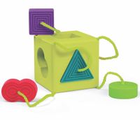 Już nigdy więcej Twoje dziecko nie zgubi elementów sortera! Kolorowe kształty o różnej fakturze wykonane z miękkiego silikonu, przyczepione są na trwałe sznureczkiem do plastikowego sześcianu. Sześć kształtów idealnie pasuje w odpowiednie miejsca kostki sortera. Sorter Kostka stymuluje dzieci już od 6 miesiąca życia i jest także idealny do zabawy i nauki w podróży.