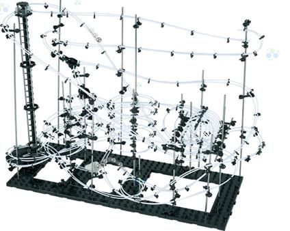 Cała konstrukcja wykonana jest z metalu, plastiku i żyłki. Połączenie wszystkich elementów finalnie daje wielki tor, po którym wędrują metalowe kulki. Zjeżdżają one przez pętle jedna za drugą aż dotrą do windy, która wiezie je na sam szczyt budowli gdzie zabawa zaczyna się od nowa. Spacerail to puzzle 3d, które wzbudzą Twoją kreatywność, ponieważ możesz budować konstrukcje według swojego uznania, nie koniecznie zgodnie z krokami zawartymi w instrukcji.