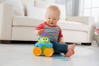 Zabierz tego wesołego stworka na spacer i patrz, jak kręci mu się głowa, a jego miękkie wdzianko radośnie powiewa i wiruje w powietrzu! Dzięki wyrazistym kolorom, wirującym ruchom i ciekawym fakturom do odkrywania dotykiem nawet nie zauważysz, gdy Twój mały szkrab zacznie sam chodzić.