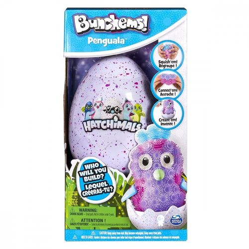 Zbuduj swojego wyjątkowego Hatchimals z rzepów Bunchems. Te małe, kolorowe kuleczki łatwo się ze sobą łączą. Postępując zgodnie z książką instruktażową - będziesz mógł ściskać, łączyć i rozrywać rzepy Bunchems aby stworzyć magicznego Pingwiniaka Hatchimals! Dodaj oczy i skrzydełka aby dopełnić magie. Zestaw ukryty jest w jajku, które idealnie nada się na przechowywanie zwierzaka po skończonej zabawie. Stwórz swojego Pingwiniaka z kulek Bunchems!