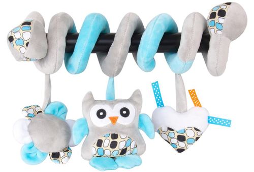 - idealna do wózka, łóżeczka lub nosidełka, - wykonana niemal w całości z miłego w dotyku pluszowego materiału, - kolorowe zawieszki z pozytywką i grzechotką, przykuwają uwagę dziecka i pobudzają zmysły, - spirala dostępna jest w trzech wersjach kolorystycznych.