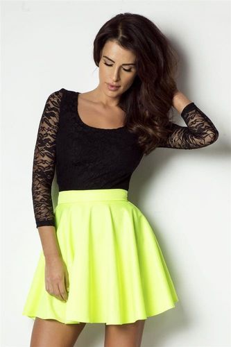 Rozkloszowana spódnica w neonowym kolorze limonki
