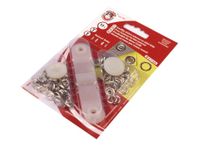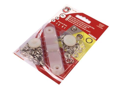 Guzików tych używa się do łączenia delikatnych i naddających się tkanin, takich jak frotte, dzianina, dżersej, itp. Nabija się je przy pomocy mini praski, która znajduje się w opakowaniu. Alternatywna nazwa: nity