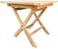 To dobrze wykonany, solidny stół piknikowy z drewna tekowego o prostym i czystym designie. Stół można łatwo ustawić, składając go i zabezpieczając za pomocą dwóch śrub dołączonych do produktu. Po użyciu produkt można złożyć w dół, co ułatwia transport. Kwadratowy blat ma wymiary 50 cm x 50 cm, a wysokość całego produktu wynosi 46 cm. Powierzchnia produktów wynosi 37 cm x 36 cm. Blat stołu ma 2 cm grubości. Waga produktu to 4,9 kg.