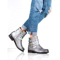 Forever Folie Botki Damskie Szare Ze skóry ekologicznej