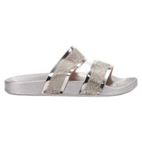 Prześliczne, srebrne klapki damskie ozdobione drobnymi cyrkoniami. Buty zwracają na siebie uwagę i pięknie wyglądają na stopie. Klasyczny fason sprawia, że jest to model ponadczasowy. Klapki zapewniają wygodę i komfort użytkowania, a przy tym są bardzo stylowe i pasują do wielu stylizacji casualowych.