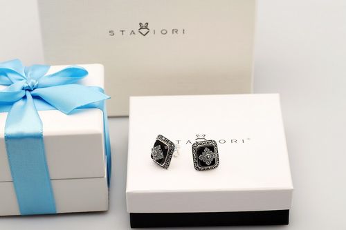 Staviori Kolczyki. Emalia. Markazyty. Srebro 0,925. Wymiary 16x13 mm. Grubość 10 mm.