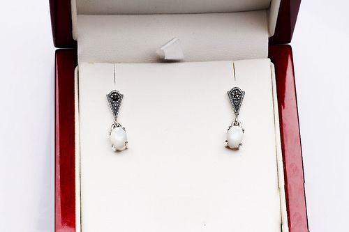 Staviori Kolczyki. Markazyty. Masa Perłowa. Srebro rodowane 0,925. Szerokość 5 mm. Długość 20 mm.